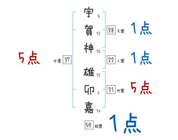 宇賀神雄卯嘉さんの画数の鑑定結果