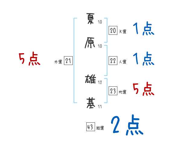 夏原雄基さんの画数の鑑定結果