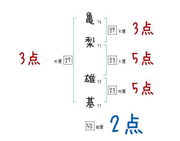 亀梨雄基さんの画数の鑑定結果