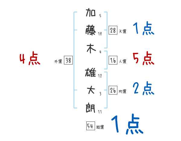 加藤木雄大朗さんの画数の鑑定結果