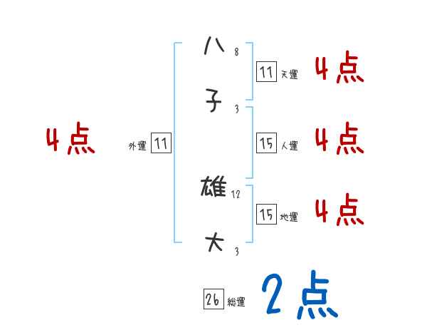 八子雄大さんの画数の鑑定結果