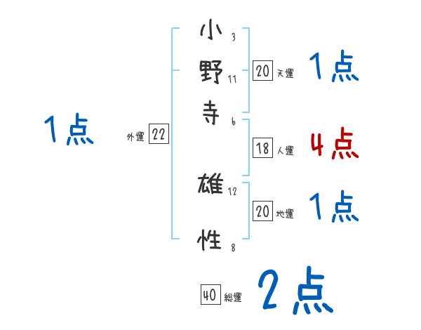 小野寺雄性さんの画数の鑑定結果