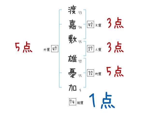 渡嘉敷雄憂加さんの画数の鑑定結果