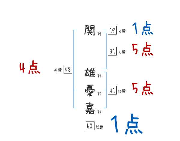 関雄憂嘉さんの画数の鑑定結果