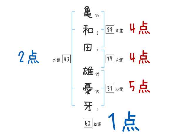 亀和田雄憂牙さんの画数の鑑定結果