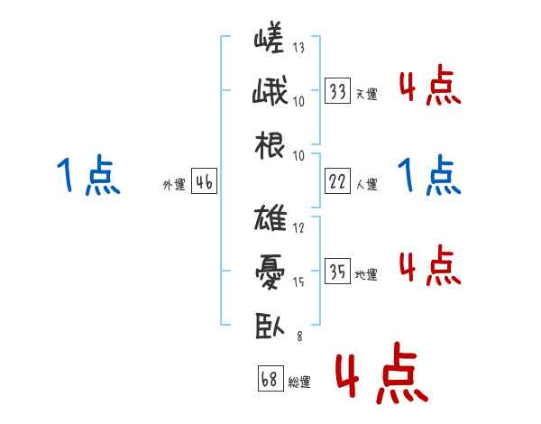 嵯峨根雄憂臥さんの画数の鑑定結果