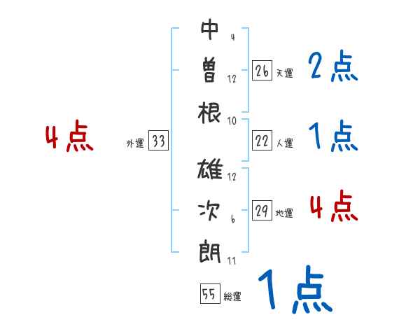 中曽根雄次朗さんの画数の鑑定結果