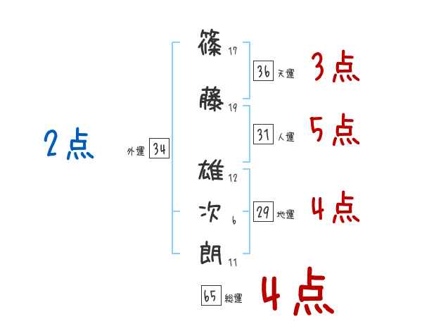 篠藤雄次朗さんの画数の鑑定結果
