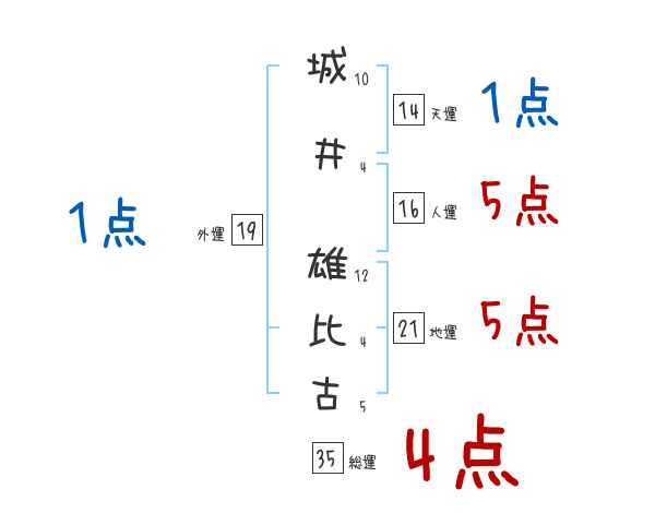 天運![]() | 城井雄比古さんの天運は14画の1つ星!人に対して優しいがストレスを溜め込みがち。人間関係のトラブルを避けるよう気をつけましょう。 家系が持つ宿命的な運勢を表します。祖先から受け継いだ苗字ですので自分の力が及びません。家柄を象徴します。 |