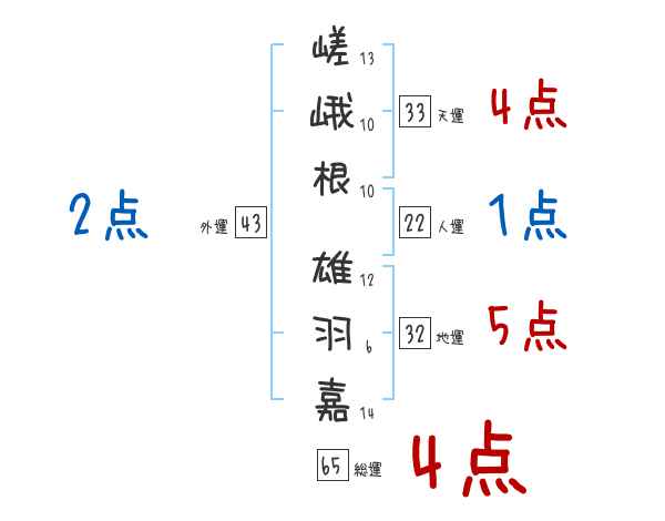 嵯峨根雄羽嘉さんの画数の鑑定結果