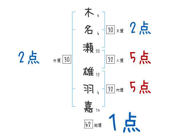 木名瀬雄羽嘉さんの画数の鑑定結果