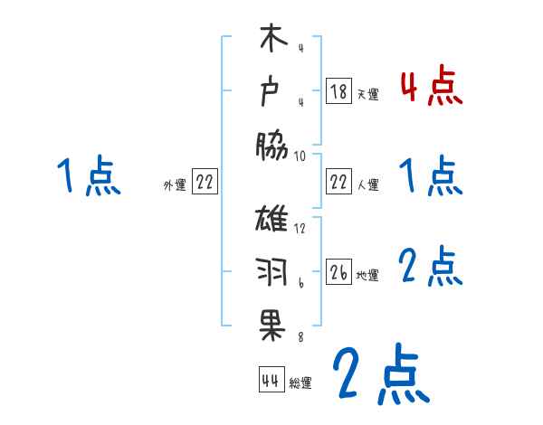 木戸脇雄羽果さんの画数の鑑定結果