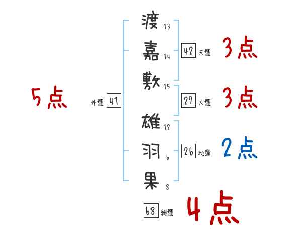 渡嘉敷雄羽果さんの画数の鑑定結果