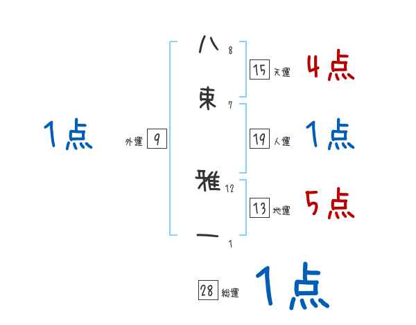 八束雅一さんの画数の鑑定結果