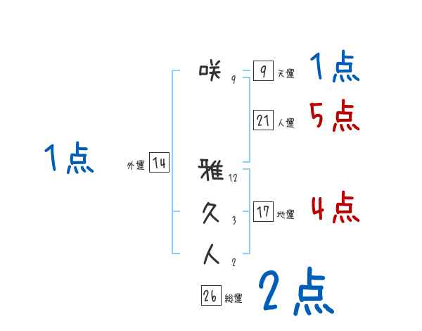 咲雅久人さんの画数の鑑定結果