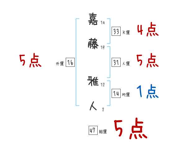 嘉藤雅人さんの画数の鑑定結果