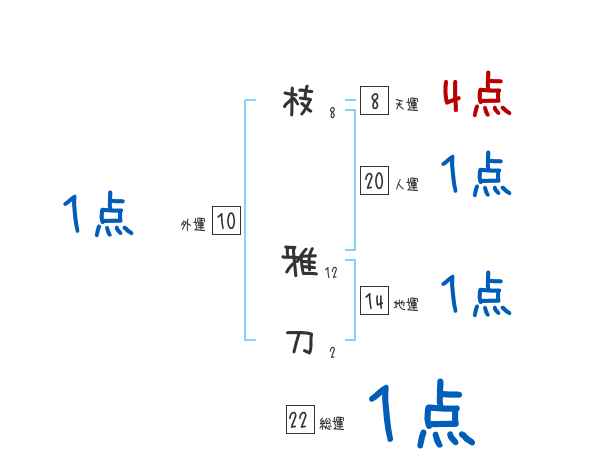 枝雅刀さんの画数の鑑定結果