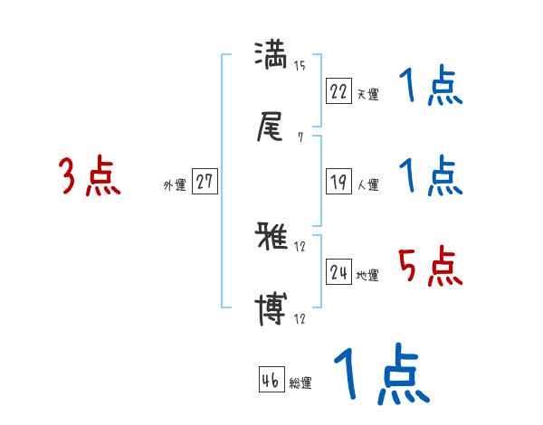 満尾雅博さんの画数の鑑定結果