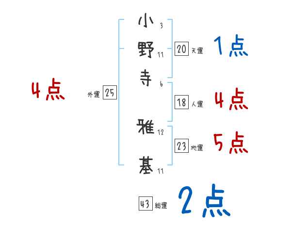 小野寺雅基さんの画数の鑑定結果