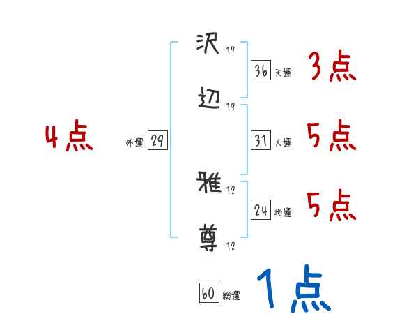 沢辺雅尊さんの画数の鑑定結果