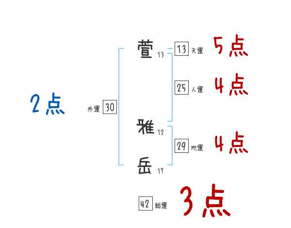 萱雅岳さんの画数の鑑定結果