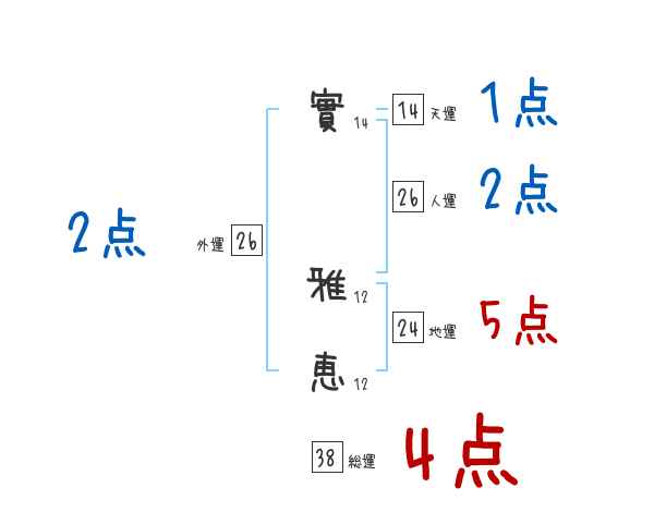 實雅恵さんの画数の鑑定結果
