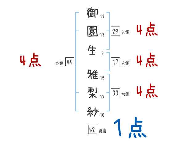 御園生雅梨紗さんの画数の鑑定結果