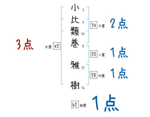 家系が持つ宿命的な運勢を表します。祖先から受け継いだ苗字ですので自分の力が及びません。家柄を象徴します。