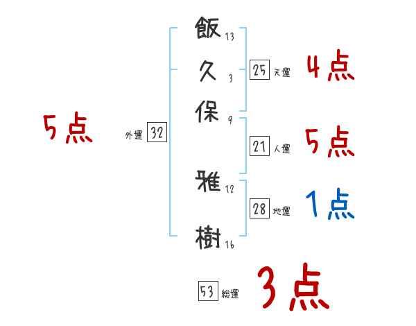 飯久保雅樹さんの画数の鑑定結果