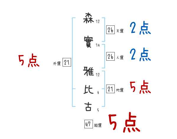 森實雅比古さんの画数の鑑定結果