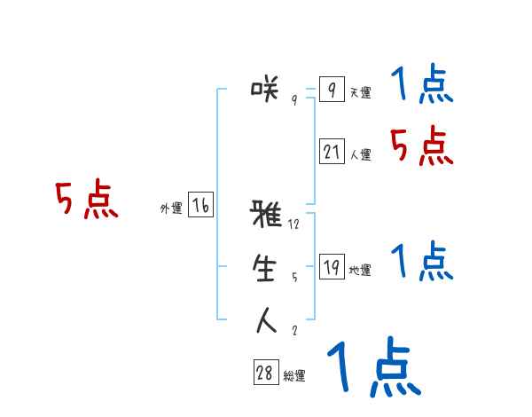 咲雅生人さんの画数の鑑定結果