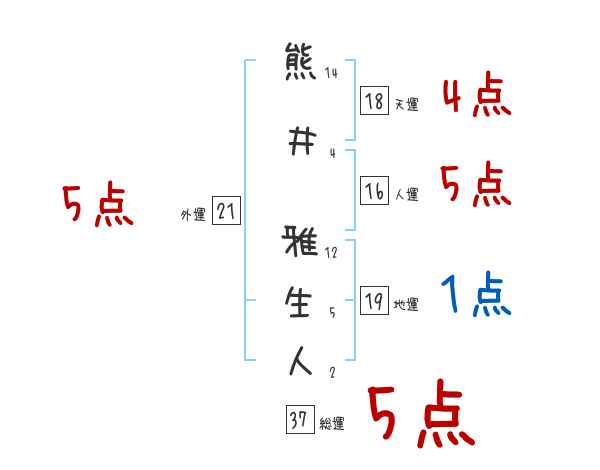 熊井雅生人さんの画数の鑑定結果