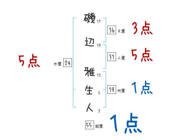 磯辺雅生人さんの外運は24画の5つ星
