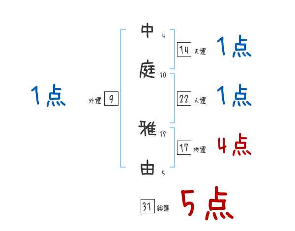 中庭雅由さんの画数の鑑定結果