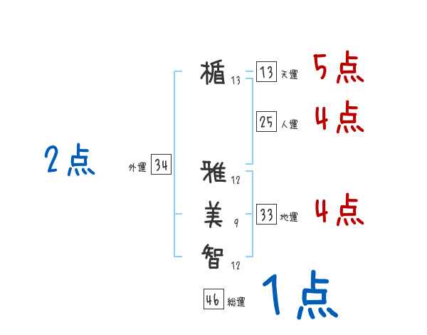 天運![]() | 楯雅美智さんの天運は13画の5つ星!才能に恵まれ人気がある。名声を手に入れる。円満な人生。 家系が持つ宿命的な運勢を表します。祖先から受け継いだ苗字ですので自分の力が及びません。家柄を象徴します。 |
