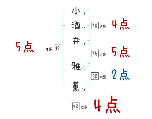 小酒井雅薫さんの画数の鑑定結果