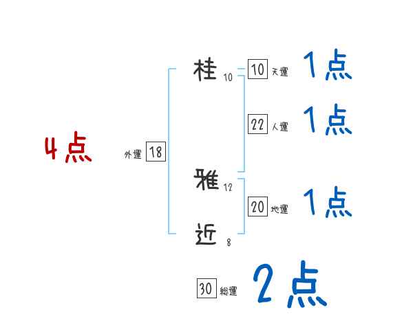 人運![]() | 桂雅近さんの人運は22画の1つ星!努力することが苦手ないっぽう手先が器用。芸術性にも優れる。 性格や才能などを表す2番目に重要な運勢です。人間関係や協調性、社会的な成功に影響します。主に20歳から50歳ぐらいまでの中年期の運勢を表します。 |