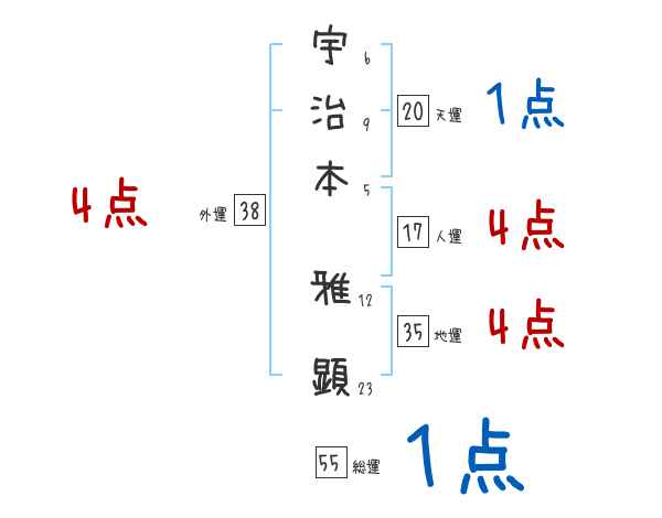 宇治本雅顕さんの画数の鑑定結果