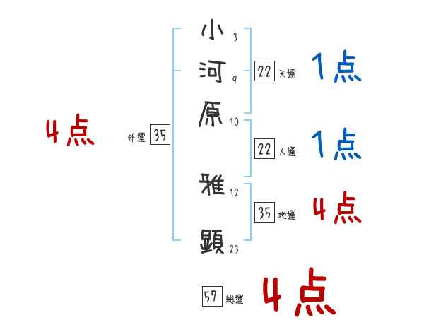小河原雅顕さんの画数の鑑定結果