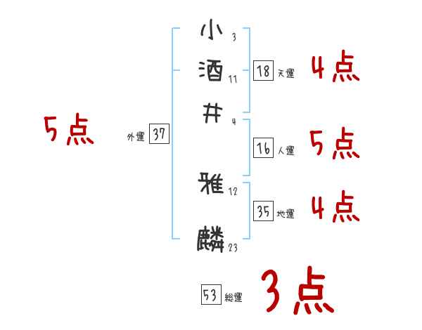 小酒井雅麟さんの画数の鑑定結果