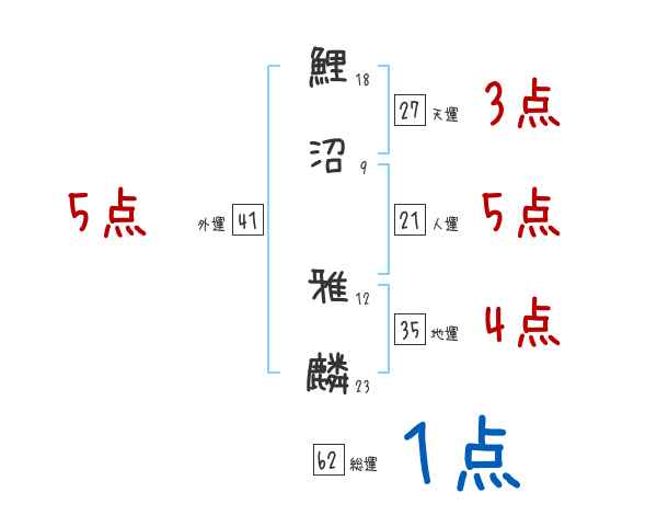鯉沼雅麟さんの画数の鑑定結果