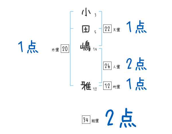 小田嶋雅さんの画数の鑑定結果