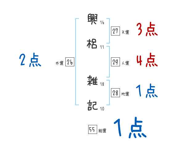 興梠雑記さんの画数の鑑定結果