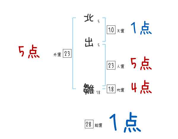 天運![]() | 北出雛さんの天運は10画の1つ星!不安を感じやすい傾向。ストレスを抱えないように注意しましょう。 家系が持つ宿命的な運勢を表します。祖先から受け継いだ苗字ですので自分の力が及びません。家柄を象徴します。 |