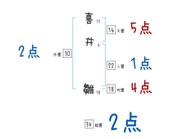 喜井雛さんの画数の鑑定結果