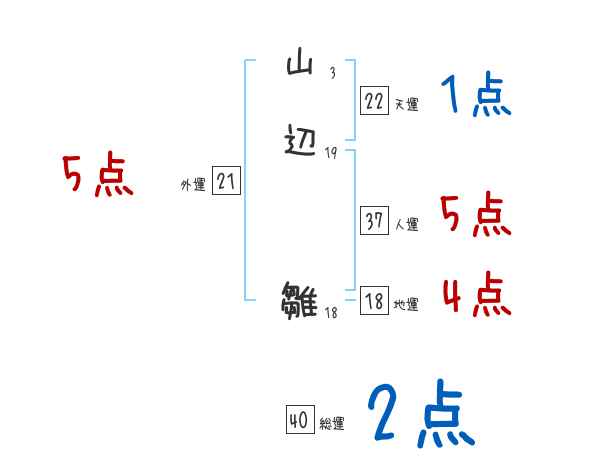 天運![]() | 山辺雛さんの天運は22画の1つ星!努力することが苦手ないっぽう手先が器用。芸術性にも優れる。 家系が持つ宿命的な運勢を表します。祖先から受け継いだ苗字ですので自分の力が及びません。家柄を象徴します。 |