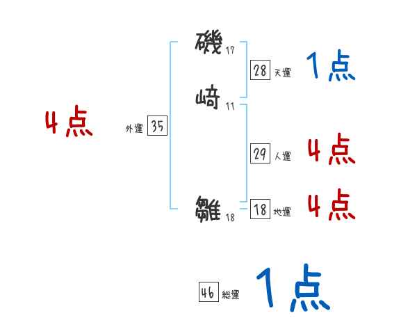 磯﨑雛さんの画数の鑑定結果