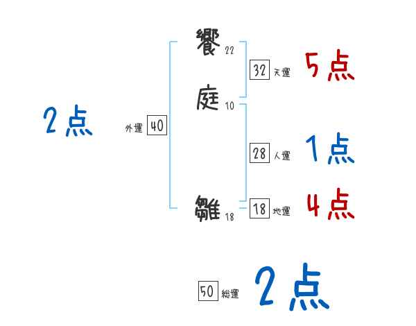 天運![]() | 饗庭雛さんの天運は32画の5つ星!柔軟性があり成功する。チャンスが多く金運が良い。 家系が持つ宿命的な運勢を表します。祖先から受け継いだ苗字ですので自分の力が及びません。家柄を象徴します。 |
