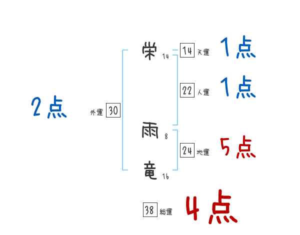 栄雨竜さんの画数の鑑定結果