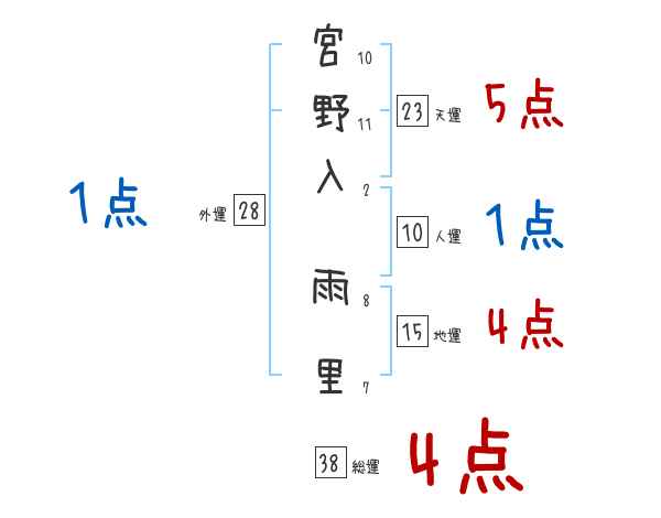 宮野入雨里さんの画数の鑑定結果